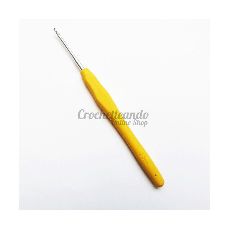 Ganchillo en aluminio con mango en silicona de 2.5mm (x Unidad), suave al tacto, liviano, practico y colorido.