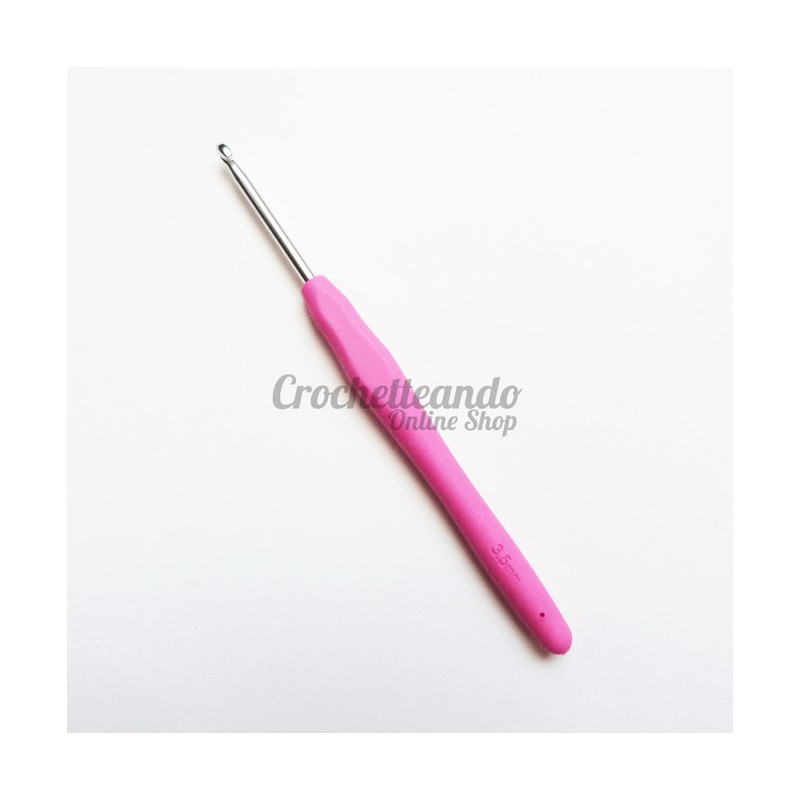Ganchillo en aluminio con mango en silicona de 3.5mm (x Unidad), suave al tacto, liviano, practico y colorido.