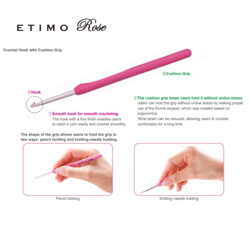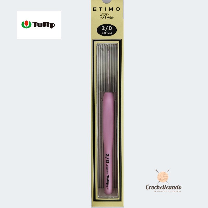 Ganchillo Tulip Etimo, ganchillo premium japones en aluminio con mango en silicona de 2.0mm (x Unidad), suave al tacto, liviano y practico.