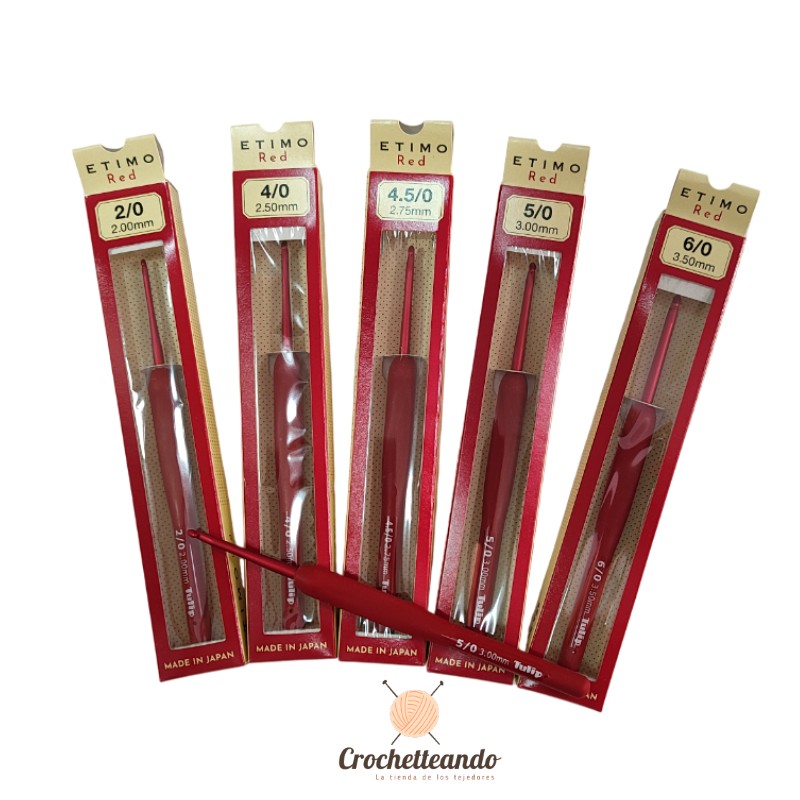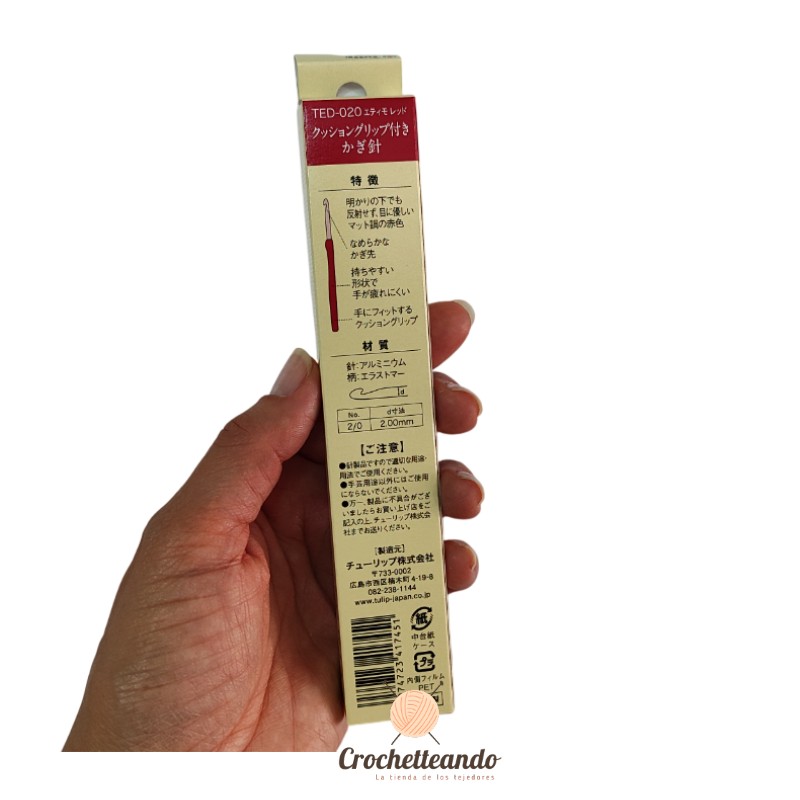 Ganchillo Tulip Etimo, ganchillo premium japones en aluminio con mango en silicona de 2.0mm (x Unidad), suave al tacto, liviano y practico.