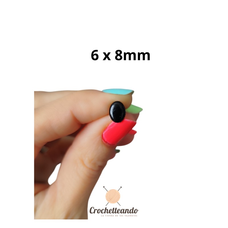 Tamaño de los ojos para amigurumi: 6 x 8mm de diámetro, incluye arandelas de seguridad.